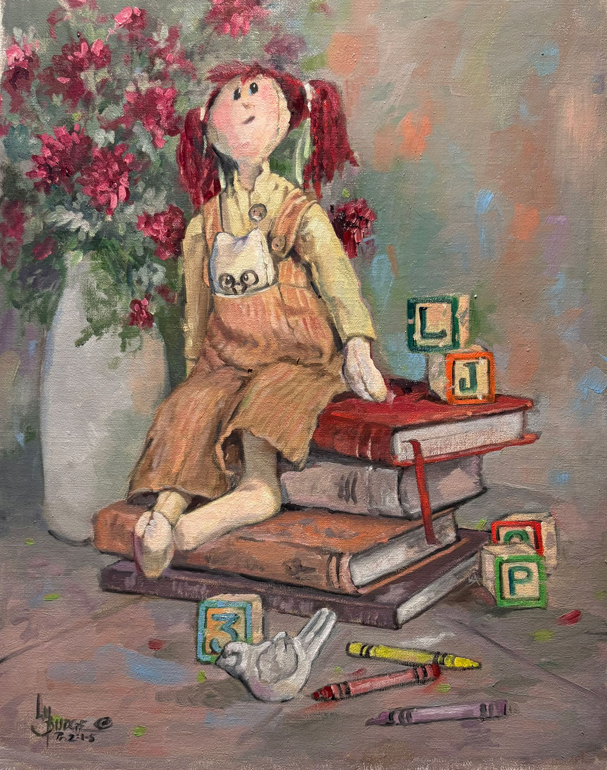 Linda Budge’s still life paintings reveal a whimsical and nostalgic side of her artistic vision, distinct from her renowned wildlife works. In these pieces, she brings to life charming domestic scenes featuring vintage toys, tea sets, and floral arrangements, often infused with storytelling elements. Her use of color and light creates a warm, inviting atmosphere, transforming everyday objects into narratives that resonate with viewers. Through these still lifes, Budge captures not just objects, but the emotions and memories they represent, offering a tender glimpse into the joys of simple moments.